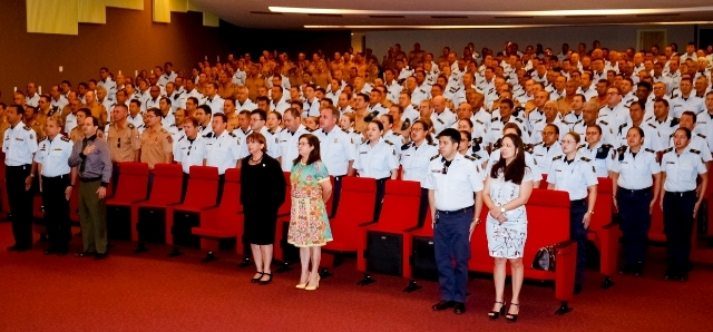 A aula inaugural aconteceu no Auditório Deputado João Frederico Ferreira Gomes, da Universidade do Parlamento Cearense (UNIPACE) e foi marcada pela palestra “Violência, polidez/cortesia, hospitalidade e ética nas relações interpessoais”, ministrada pela Professora Doutora, Letícia Adriana Pires Ferreira. A docente da Universidade Estadual do Ceará (UECE) há 32 anos com relevantes pesquisas na temática da violência urbana, explica a importância desses conceitos para a atuação dos agentes da segurança pública. “O militar vive em uma situação de muita exposição, tanto midiática, como pessoal, na profissão deles, essa exposição é constante e a interação pessoal é algo extremamente complexo, mas quando a pessoa tem a hospitalidade, a cortesia e percebe a diversidade humana em uma ação de acolhimento, os conflitos podem ser minimizados. Então, fundamentos como a ética e a cortesia são importantíssimos para agregar aos conhecimentos que estes militares têm do cotidiano e fazer uma ação mais acolhedora e é essa ação de acolhimento que contribui para a construção de um Ceará Pacifico e um mundo melhor”, esclarece a pesquisadora.