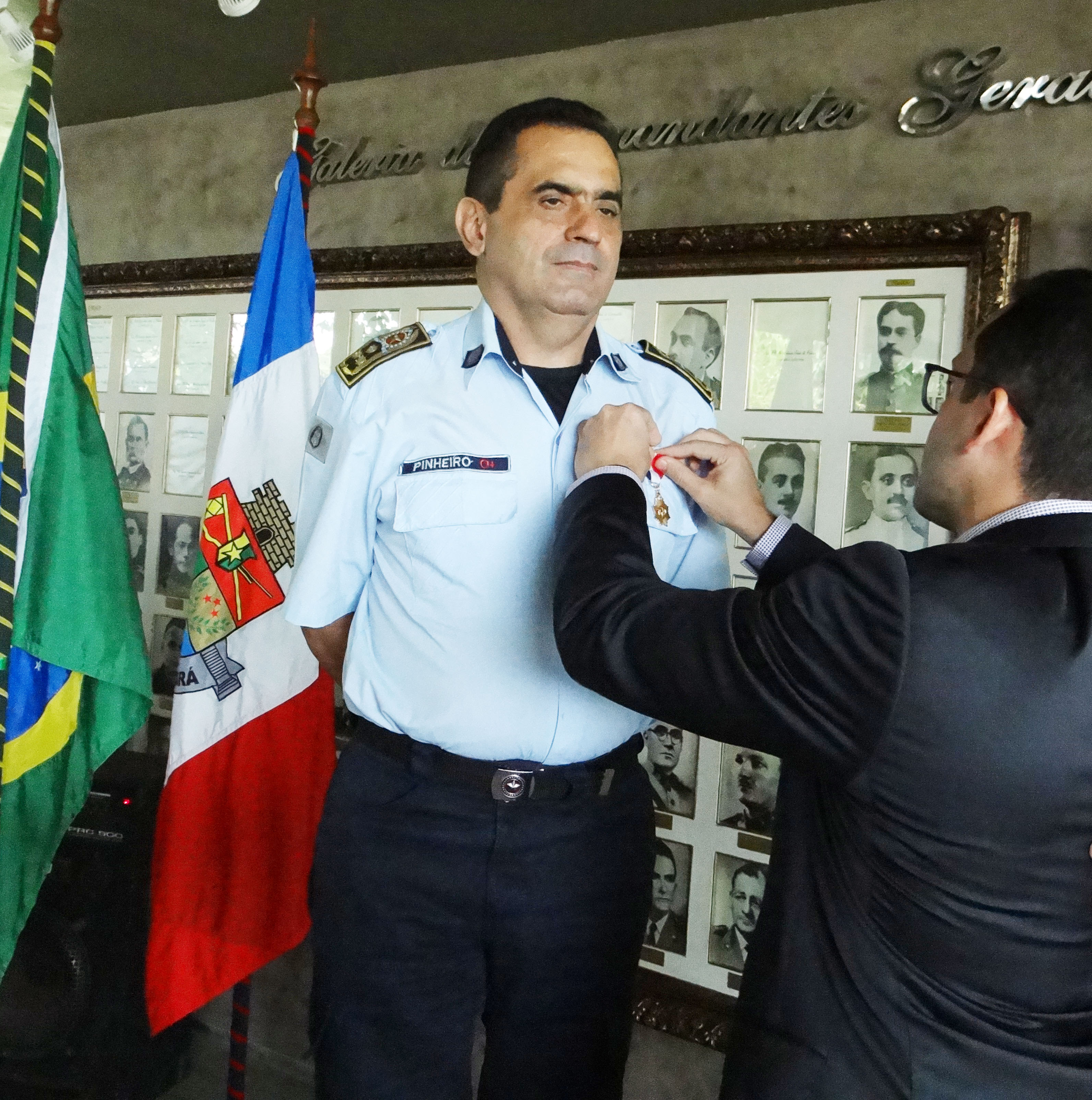 O evento ocorreu na manhã de hoje (19), no Quartel do Comando Geral. O descerramento de foto do Coronel Geovani Pinheiro, Comandante Geral substituído, na galeria dos ex-comandantes gerais da PMCE, marcou o fim da trajetória vitoriosa do Oficial na PMCE, após 31 anos de serviços prestados a Corporação.