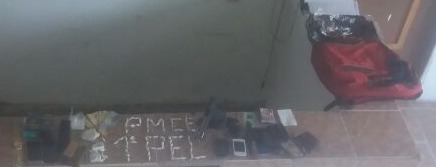 Além da pistola de uso restrito das forças de segurança, os policiais militares também encontraram na bolsa, um tijolo de maconha, pesando 208 gramas, 76 papelotes de cocaína, pesando 35 gramas, um cartucho calibre 38, deflagrado. Também foram apreendidos sete aparelhos celulares e outros objetos.