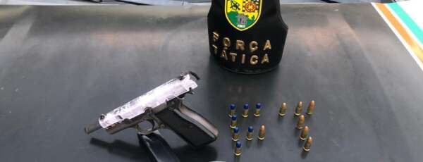 Os policiais foram até o local, e, quando realizavam a abordagem padrão, avistaram um indivíduo escondendo um objeto no pneu de um veículo. Diante da suspeita, foi realizada a revista no carro e a arma localizada. Nenhum equipamento de som foi apreendido.