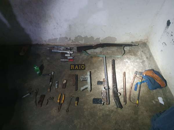 De imediato, os militares se dirigiram ao local da denúncia, e abordaram o suspeito. No momento da abordagem nenhum ilícito foi encontrado, porém ao ser indagado acerca do teor dos informes, o indivíduo autorizou a entrada da composição e acompanhou as buscas, durante as quais os policiais lograram êxito na apreensão das armas e munições. No interior da casa havia uma arma de fogo e no quintal mais duas armas de fabricação artesanal foram desenterradas pelos policiais do CPRaio, bem como diversos materiais para fabricação de outras armas.