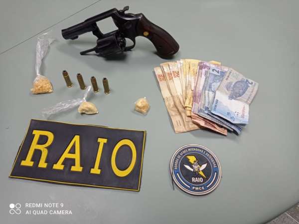 Na ação foi localizado um revólver calibre .38 com quatro munições não deflagradas e R$ 471,00 em espécie com o jovem. Ao ser questionado, o adolescente confessou aos militares que vendia entorpecentes. Na casa dele foram apreendidos 14 gramas de crack.