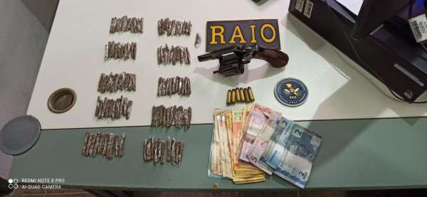 Em patrulhamento pela Rua Herculano Pena, os policiais avistaram um indivíduo que tentou empreender fuga depois de perceber a presença dos militares. Ao ser alcançado, tentou se desfazer de uma sacola que estava na mão dele. Durante a busca pessoal o revólver foi encontrado. A droga estava na sacola.