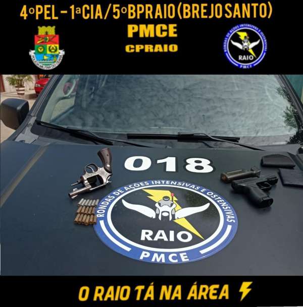 A Polícia Militar do Ceará (PMCE), por meio do Comando de Policiamento de Rondas e Ações Intensivas e Ostensivas (CPRAIO), realizou, na manhã deste domingo (26), em Brejo Santo-CE, a prisão de Arthur Costa de Assis (27) por porte ilegal de um revólver calibre .38 com 17 munições. O suspeito tentava comercializar o armamento em sua rede social.