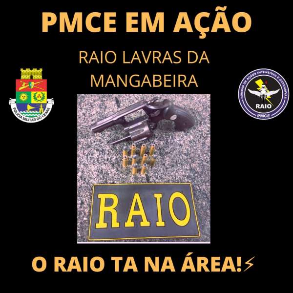 Na noite de ontem, 1º, uma equipe do Comando de Policiamento de Rondas e Ações Intensivas e Ostensivas (CPRaio), da Polícia Militar do Ceará (PMCE), efetuou a prisão dos irmãos Fabiano Vieira da Silva, 28, e Ana Karolina Vieira da Silva, 26, em Lavras da Mangabeira-CE. Com eles, um revólver calibre .38 e seis munições foram apreendidos.