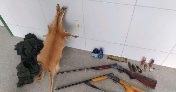 Por volta de 12h30min de hoje, 23, a Polícia Militar do Ceará (PMCE), através da 3ª Companhia do Batalhão de Polícia de Meio Ambiente (BPMA), apreendeu duas espingardas cartucheiras calibre .36, um couro de gato-mourisco vermelho e diversos utensílios utilizados para a caça de animais silvestres no município de Tururu/CE. Jonilson Barros Lopes (45) assumiu a propriedade do material e irá responder por posse ilegal de arma de fogo e crime ambiental.
