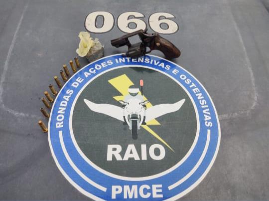 Na manhã de hoje, 29, Policiais Militares do Comando de Policiamento de Rondas e Ações Intensivas e Ostensivas (CPRaio) retiraram de circulação mais uma arma de fogo.O fato aconteceu no bairro Pôr-do-sol, na localidade de Lagoinha, município de Paraipaba/CE. Wesley Laurentino de Lima (29), com passagens pela Polícia por homicídio, roubo e receptação, foi preso em posse de um revólver calibre 38 com 10 munições e 30 gramas de maconha.
