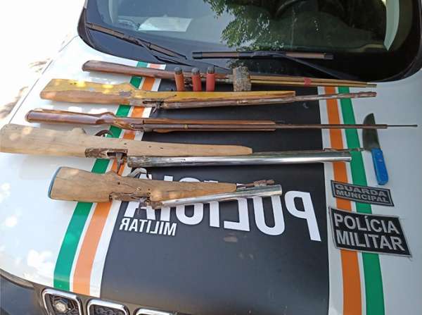 A Polícia Militar do Ceará (PMCE) realizou hoje, 03, a apreensão de cinco espingardas artesanais na cidade de Carnaubal-CE, região da Serra da Ibiapaba. Com a prisão do suspeito, a equipe da 2ª Companhia do 3º Batalhão Policial Militar (2ª Cia do 3º BPM), em Tianguá, conseguiu chegar até o suspeito de fabricar as armas de fogo.