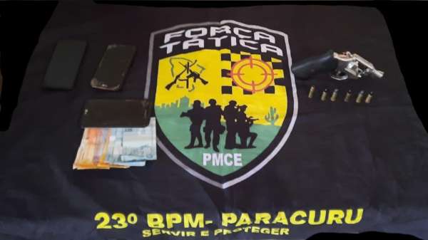 Um adolescente suspeito de roubo contra um mototaxista foi apreendido nesta quinta-feira, 04, no município de Paraipaba/CE. Com o menor de idade foi encontrado um revólver calibre 38 usado para a prática do crime, bem como R$ 417,00 reais em espécie e três aparelhos celulares, oriundos do roubo.