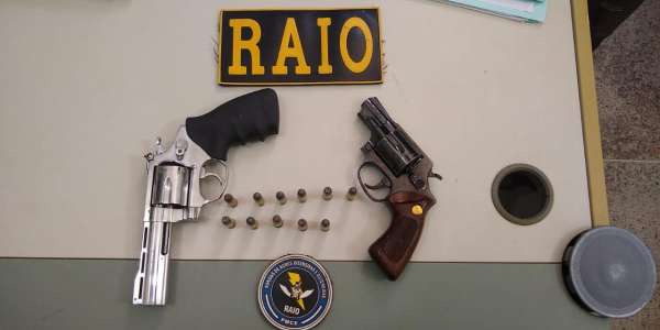 Diante da suspeita, foi realizada a devida vistoria no imóvel, onde as armas foram localizadas. Ainda, durante a ocorrência, uma mulher chegou ao local e desacatou os militares proferindo palavras de baixo calão.