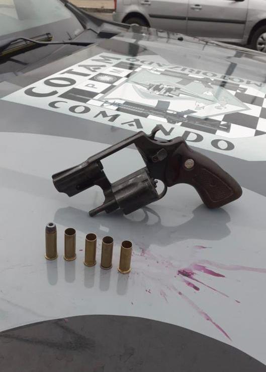 Após serem acionados por meio da Coordenadoria Integrada de Operações de Segurança (Ciops), por volta de 15h30min dessa terça-feira, 09, para atender uma ocorrência de disparos de arma de fogo nas adjacências da Avenida Osório de Paiva, bairro Siqueira, o Comando Tático Motorizado (Cotam) capturou um indivíduo de nome Samid Lucas Castro Bezerra (22). Na abordagem, os militares apreenderam com o indivíduo um revólver calibre 38 com quatro munições deflagradas e uma intacta.