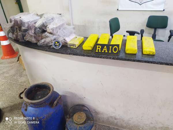 Na ação, o criminoso apontou a localização de mais drogas enterradas em um segundo recipiente, bem como, na sua casa, foi apreendido meio tablete de droga prensada.