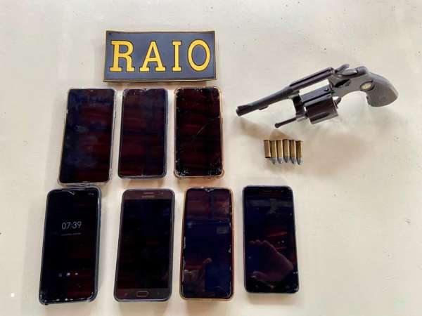 Com os suspeitos foram encontrados um revólver calibre 38 com cinco munições intactas e uma deflagrada; sete celulares; duas bolsas femininas; uma mochila e um tênis com símbolo da Nike; um carregador de celular Samsung; um relógio de pulso digital de marca RELOG’S; além de uma quantia de R$ 47,70 reais. Os indivíduos foram conduzidos para a Delegacia da Criança e do Adolescente (DCA), onde foram autuados no artigo 157 (Roubo) e no artigo 244 (Estatuto da Criança e do Adolescente).