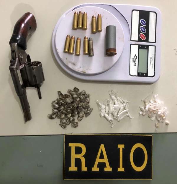 Na manhã desta terça-feira, 09, uma equipe do Comando de Policiamento de Rondas de Ações Intensivas e Ostensivas (CPRaio) da Polícia Militar do Ceará (PMCE) prendeu Derik David Costa de Souza, 20, e Ana Emilly Andrade Alves ,19, em Caucaia-CE. Com a dupla, foram apreendidos um revólver calibre .38 e dez munições desse calibre, uma munição de calibre 12, 24 pedras de crack, 54 trouxas de maconha, 24 trouxas de cocaína e uma balança de precisão.