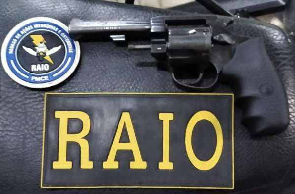 Por volta das 21h30, composição do CPRAIO estava em patrulhamento na região do Vicente Pinzon e Castelo Encantado quando nas proximidades da via férrea, rua Alto Alegre do bairro Mucuripe, os policiais militares visualizaram um carro estacionado com um indivíduo próximo, sendo realizado abordagem ao mesmo. O homem se apresentou com um nome falso que foi constatado durante verificação ao sistema policial. A companheira do suspeito se aproximou e informou a identidade do mesmo, relatou ainda que ele havia se livrado de tornozeleira eletrônica cerca de dois meses atrás. A equipe procedeu vistoria minuciosa e próximo ao carro, escondido por capins no chão, foi encontrado um revólver calibre .38, sem munições. O suspeito confessou que arremessou a arma de fogo ao observar a aproximação da composição.