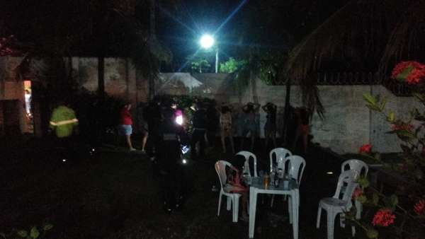 A Polícia Militar do Ceará (PMCE) encerrou, na noite ontem, 15, na Prainha, Aquiraz-CE, uma festa clandestina com aglomeração de pessoas em desrespeito ao decreto estadual destinado a impedir a propagação do novo coronavírus. Cerca de 20 pessoas, entre maiores e menores de idade, foram conduzidas à Delegacia da Polícia Civil do Eusébio, onde foi registrado procedimento por violação ao art. 268 do Código Penal Brasileiro e art. 42 da Lei de Contravenções Penais.