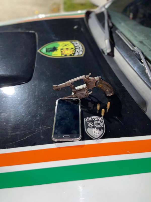Os policiais coletaram as características dos suspeitos e iniciaram as diligências. Durante as rondas, chegou o informe de que os indivíduos estavam homiziados em um imóvel. Os militares fizeram o cerco e conseguiram capturar a dupla no local com a arma de fogo referida.