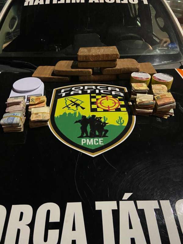 Trio é detido pela Força Tática da PMCE com sete quilos de drogas e mais de R$ 28 mil no Cambeba, em Fortaleza