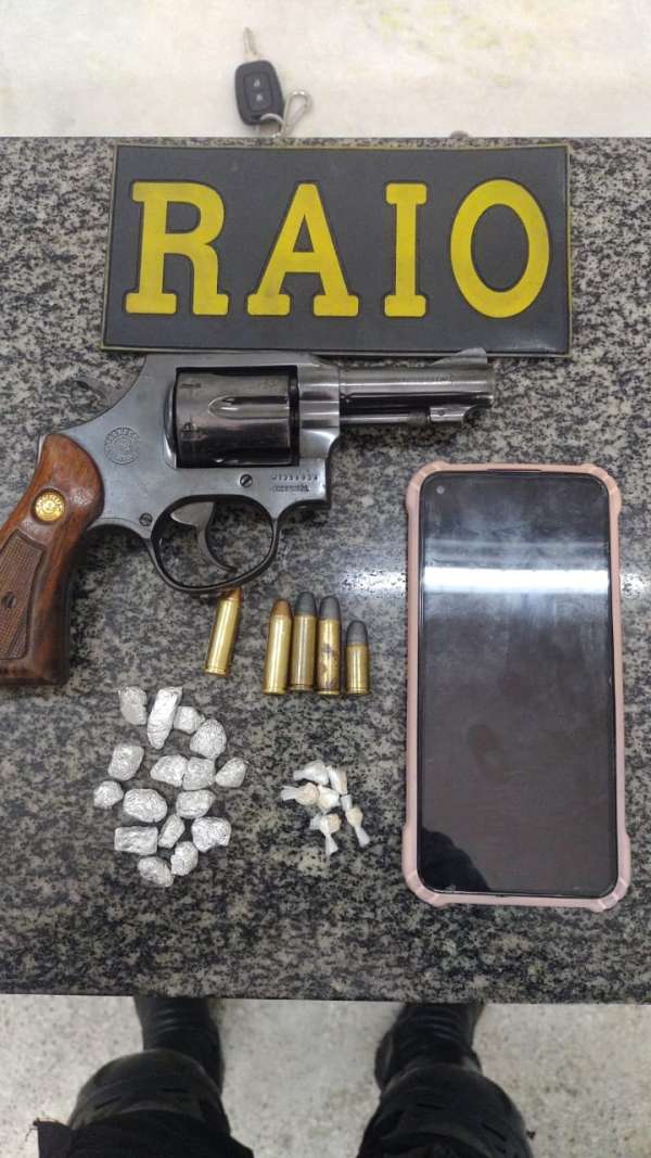 Uma composição do Comando de Policiamento de Rondas e Ações Intensivas e Ostensivas (CPRaio), da Polícia Militar do Ceará (PMCE), efetuou a prisão de Francisco Bruno Cavalcante Pereira (27) e Rosilene Almeida Bezerra (31), com quem foram apreendidos um revólver calibre .38 e 6,1 gramas de maconha e 0,4 grama de crack. O fato ocorreu na última sexta-feira, 11, entre as divisas dos municípios cearenses de Pacajus e Chorozinho.