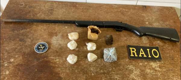 Denúncia anônima chegou até composição do CPRAIO em Sobral relatando que em travessa no bairro Várzea Grande, foi visto uma pessoa escondendo arma e drogas no terreno baldio. Os PMs foram até o local e, após varredura, localizaram uma espingarda artesanal, 255 gramas de cocaína e 285 gramas de maconha.