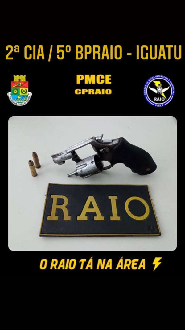 Na manhã de hoje, 27, uma equipe do Comando de Policiamento de Rondas de Ações Intensivas e Ostensivas (CPRaio), da Polícia Militar do Ceará (PMCE), apreendeu um revólver de calibre .38 em Iguatu-CE.