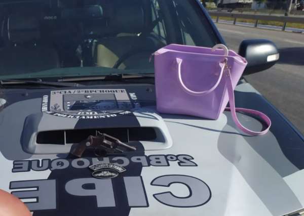O condutor se apresentou como motorista de aplicativo e informou que estava numa corrida com três passageiros. No momento em que estes foram submetidos à busca pessoal, a arma de fogo foi localizada no interior da bolsa de uma passageira, na qual também foram apreendidos dez peças de roupa, dois aparelhos celulares, um carregador, um cartão de crédito e R$ 469,00 em espécie.