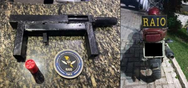 De imediato, a equipe do CPRAIO foi até o local averiguar e se depararam com os suspeitos na rodovia em uma motocicleta, sendo dado voz de parada. Com os adolescentes de 15 e 17 anos e Francisco foi apreendido uma espingarda artesanal e uma munição, além da motocicleta.
