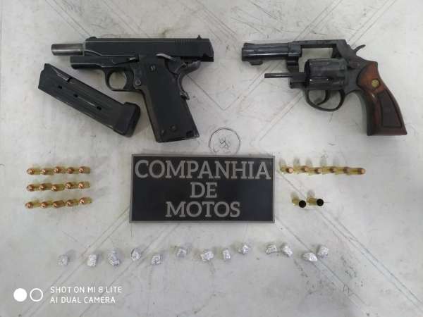 A Polícia Militar do Ceará (PMCE) prendeu uma dupla por porte ilegal de uma pistola calibre 380 e um revólver calibre 38, na tarde deste domingo, 19, em Fortaleza. A prisão foi efetivada pelos agentes do Comando de Policiamento de Rondas e Ações Intensivas e Ostensivas (CPRAIO).