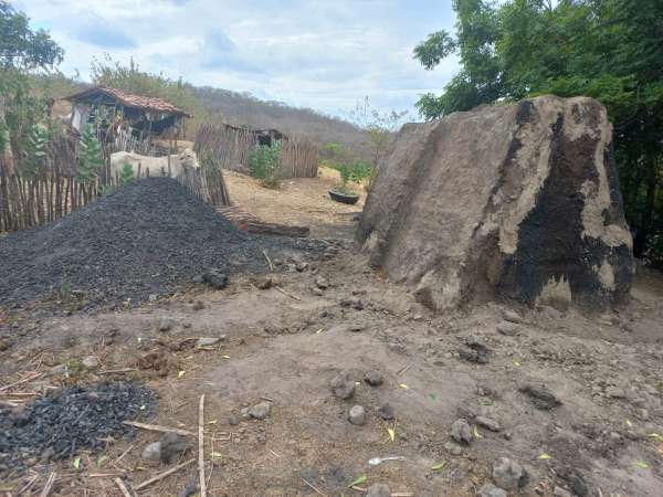 A Polícia Militar do Ceará (PMCE) encontrou na manhã desta segunda-feira (27) 50 sacas de carvão e 500 estacas de madeira após denúncia de irregularidades na zona rural de Baturité. Um homem foi conduzido para a delegacia.