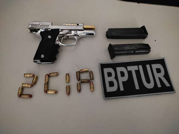 A composição foi até o local e abordou o homem, que estava dentro do carro. Na busca veicular, os policiais encontraram uma pistola calibre 380 com 27 munições, estando uma deflagrada.