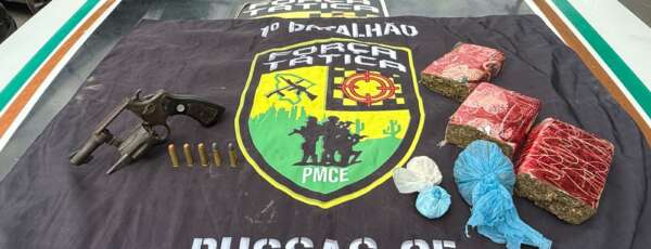 Além da arma de fogo, foram apreendidos com os suspeitos quatro bolsas, uma carteira porta cédulas feminina, uma mochila, três aparelhos celulares, dentre outros itens de procedência duvidosa.