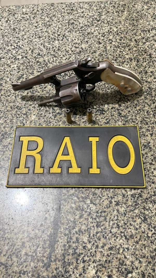Equipe do Comando de Policiamento de Rondas de Ações Intensivas e Ostensivas (CPRAIO) realizava policiamento de rotina na cidade de Tauá, quando por volta das 21h00, na Vila Dormideira, abordou o suspeito e com o mesmo foi apreendido um revólver com duas munições intactas.