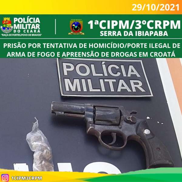 A Polícia Militar do Ceará (PMCE) prendeu dois indivíduos por tentativa de homicídio e em poder de uma arma de fogo e drogas, na tarde dessa sexta-feira (29), em Ibiapina-CE. A prisão foi efetuada por agentes da 1ª Companhia Independente de Polícia Militar do 3º Comando Regional de Polícia Militar (1ªCIPM/3°CRPM).