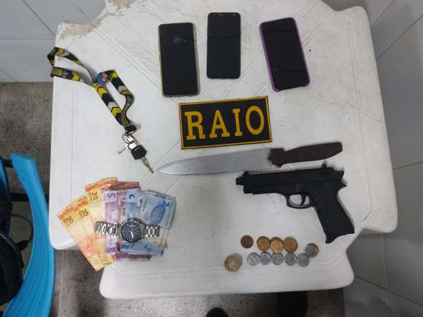 A Polícia Militar do Ceará (PMCE) efetuou a prisão de dois indivíduos, identificados como Wagner Veras Ximenes, 26, e Weberson Gonçalves Santiago, 27, suspeitos de roubo, na noite da última terça-feira (09), no Bairro Ellery, em Fortaleza. Com a dupla, os militares apreenderam um simulacro de pistola e uma faca e recuperaram R$ 139,25 em espécie, três aparelhos celulares e uma motocicleta roubada.