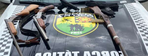 Uma ação da Polícia Militar do Ceará (PMCE) resultou na apreensão um revólver calibre 32, uma espingarda artesanal calibre 16 e um rifle artesanal calibre 22. Na ocasião um suspeito foi preso. A ofensiva foi comandada por policiais militares da Companhia de Operações de Divisas (COD), do Batalhão Especializado de Policiamento no Interior (Bepi), por volta das 23h dessa sexta-feira (12), no Distrito de Dom Quintino, no Crato-CE.