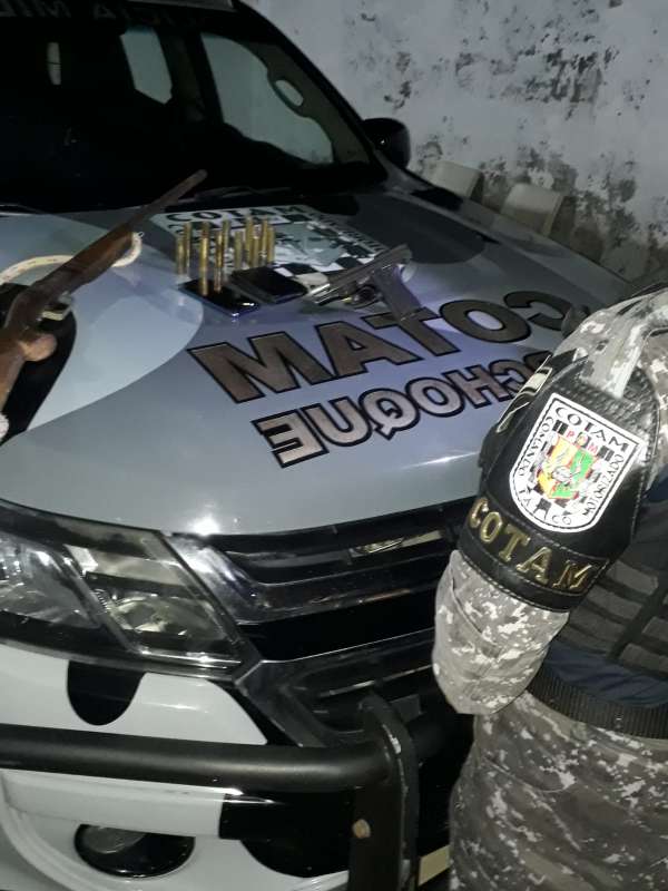 A Polícia Militar do Ceará (PMCE) prendeu, na noite desse sábado, (13), Arionaldo dos Santos Silva, 35, em poder de uma pistola calibre 380 e um de rifle calibre 28. A prisão foi efetuada por agentes do Comando Tático Motorizado (Cotam) do Comando de Policiamento de Choque (CPChoque) na Região Metropolitana de Fortaleza, em Caucaia.