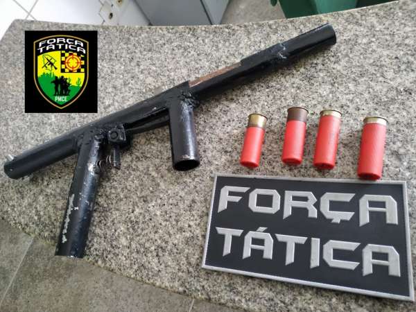 Na manhã desta segunda-feira (03), Carla Gertrudes de Aguiar, 27, e Wellisson Fernandes Benício, 30, foram presos por uma composição de Força Tática (FT) do 17º Batalhão da Polícia Militar do Ceará (PMCE). Na residência onde estavam, os militares apreenderam uma arma artesanal de calibre 12 e quatro munições. A ocorrência foi registrada no bairro Bom Jardim, em Fortaleza-CE.