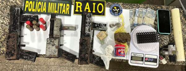 Com o suspeito foi encontrado um revólver calibre 38 municiado e vários tabletes de maconha pesando, aproximadamente, 6.380 quilos.