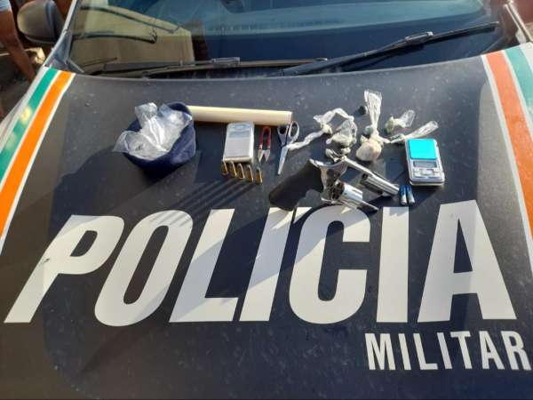 Por volta das 07h, uma equipe da 2ª Companhia do 11º Batalhão Policial Militar foi até uma casa na rua Raimunda Soares da Silva, do bairro pedreira, para cumprimento de mandado de busca e apreensão. No local, foi detido o casal e apreendido um revólver com cinco munições, crack (40,9 gramas), maconha (5,5 gramas), duas balanças, dois aparelhos celulares, duas tesouras e embalagem para os entorpecentes.