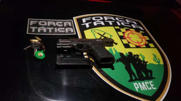A Polícia Militar do Ceará (PMCE) prendeu um indivíduo armado e capturou um adolescente com uma pistola 9mm após troca de tiros e acompanhamento tático, na noite desse domingo (23), no Lagamar, em Fortaleza-CE. A apreensão foi efetuada por agentes do Força Tática do 22º Batalhão Policial Militar (22ºBPM).