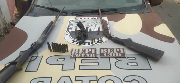 Na manhã desta terça-feira (25), composições da Polícia Militar do Ceará (PMCE) apreenderam três armas de fogo, sendo duas espingardas e um revólver. Na ação policial, ocorrida no município cearense de Barreira, houve duas autuações por posse ilegal de arma de fogo.