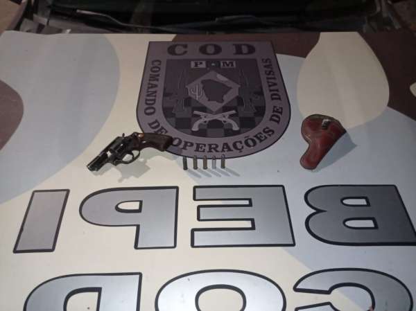 A ação aconteceu depois que os militares receberam uma denúncia sobre um homem, armado e que estaria premeditando realizar ações criminosas. Com as informações, os militares foram ao local indicado e o encontraram. Ao ser abordado, o indivíduo assumiu ser de fato detentor de uma arma de fogo, revólver calibre 38, o qual foi apreendido pelos policiais no local.