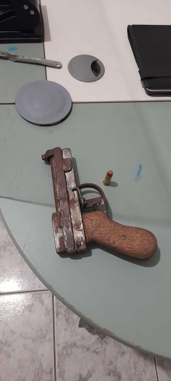 Pedro Lucas Ribeiro Martins, 20, que tentou fugir da equipe policial, porém, sem êxito. Uma pistola artesanal calibre 38 foi apreendida com ele.