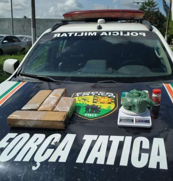 A Polícia Militar do Ceará (PMCE) prendeu um indivíduo por tráfico ilícito de entorpecentes, nesse sábado (5). A ação foi realizada por agentes do Força Tática do 14º Batalhão Policial Militar e com o suspeito foram encontrados quase quatro quilos de drogas.
