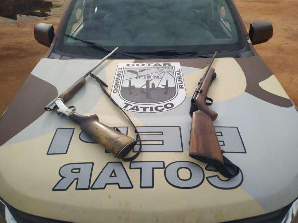 A composição foi até a residência apontada, por volta das 06h, no bairro Grossos, e se deparou com o mesmo, sendo apreendida com ele uma espingarda.