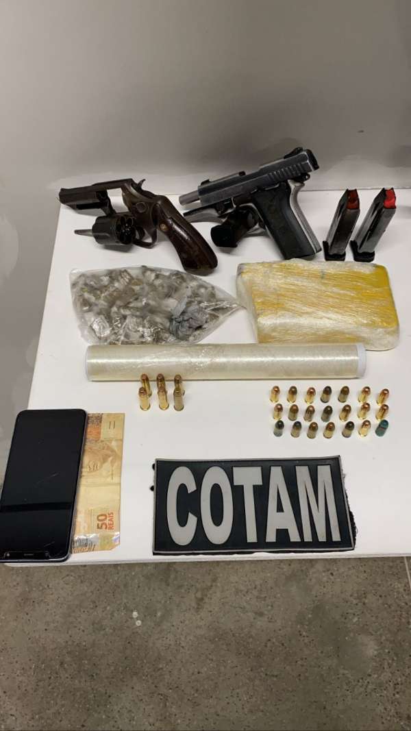 A Polícia Militar do Ceará (PMCE) prendeu dois indivíduos e apreendeu armas e drogas, nesta terça-feira (14), na Messejana. Uma pistola e o revolver estavam escondidos dentro de um berço de criança. A prisão foi efetuada por militares do Comando Tático Motorizado (Cotam).
