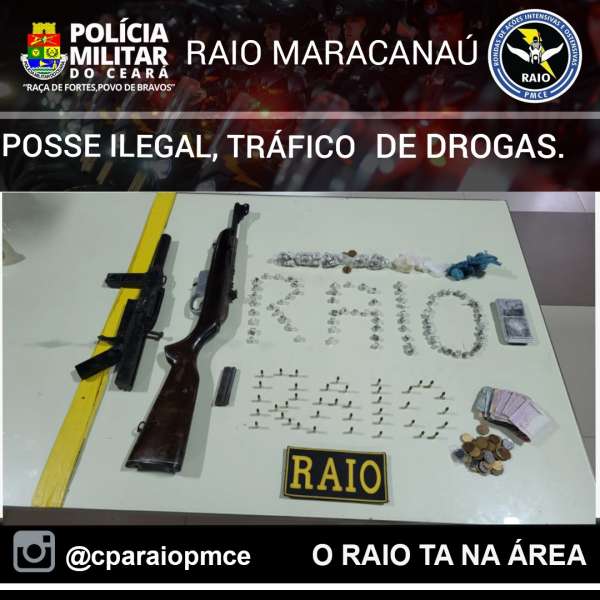 A Policia Militar do Ceará (PMCE) apreendeu uma espingarda calibre 22, uma arma artesanal calibre 12, R$ 414,00 em espécie, 25 gramas de crack, 100 gramas de maconha e 0,4 grama de cocaína com um adolescente. A ação se deu depois que uma composição do Comando de Policiamento de Rondas de Ações Intensivas e Ostensivas (CPRAIO) realizava policiamento ostensivo, nessa sexta-feira (25), no bairro Canindezinho, em Fortaleza.