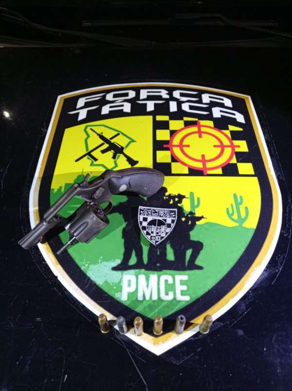 Os policiais militares foram até o local e se depararam com Márcio Sousa com um revólver na cintura, sendo abordado e apreendido o revólver com cinco munições intactas, além de uma munição no bolso da calça do mesmo.