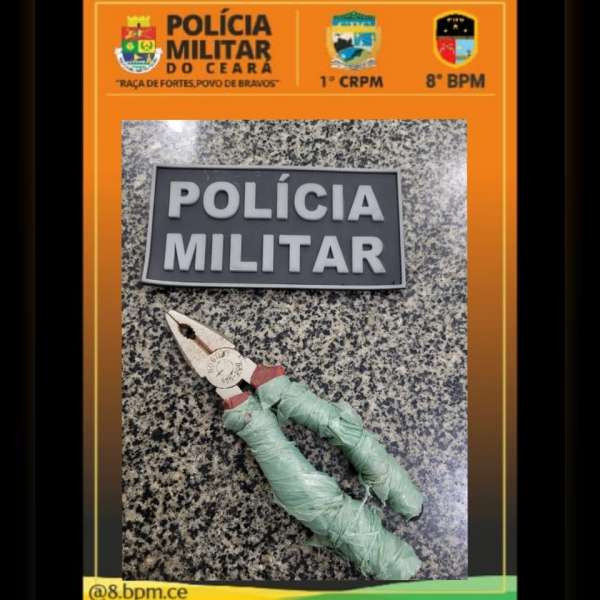 Durante ações de policiamento ostensivo e preventivo, a viatura da PMCE foi acionada por uma testemunha a qual informou que um suspeito acabara de cortar, com alicate, o fio de energia elétrica de um poste.