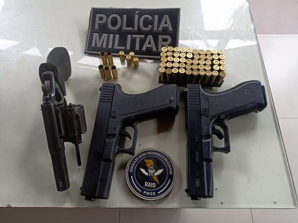 A Polícia Militar do Ceará (PMCE) capturou uma dupla com um revólver calibre 38 e duas réplicas de pistola, nesse sábado (2), no Jangurussu. A resposta policial foi realizada por agentes do Comando de Policiamento de Rondas e Ações Intensivas e Ostensivas (CPRAIO), após ocorrência de disparo de arma de fogo.